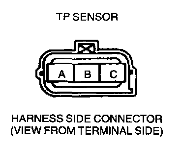 - Reference voltage circuit (TP sensor connector terminal C and PCM connector terminal 90 to Ground)