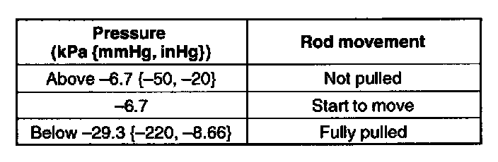 4. Apply pressure slowly and inspect the rod movement of the VTCS shutter valve actuator under the following condition.