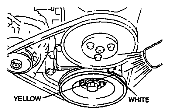 3. Verify that the timing mark (yellow) on the crankshaft pulley and the mark on the timing belt cover are aligned.