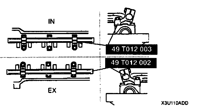 CAUTION: Removing adjacent bolts of the camshaft cap could cause burrs on the thrust receiving area. To avoid this, do not remove adjacent bolts of the camshaft cap. Remove only one pair of cap bolts at a time.