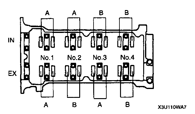 4. Measure the valve clearance at B in the figure.