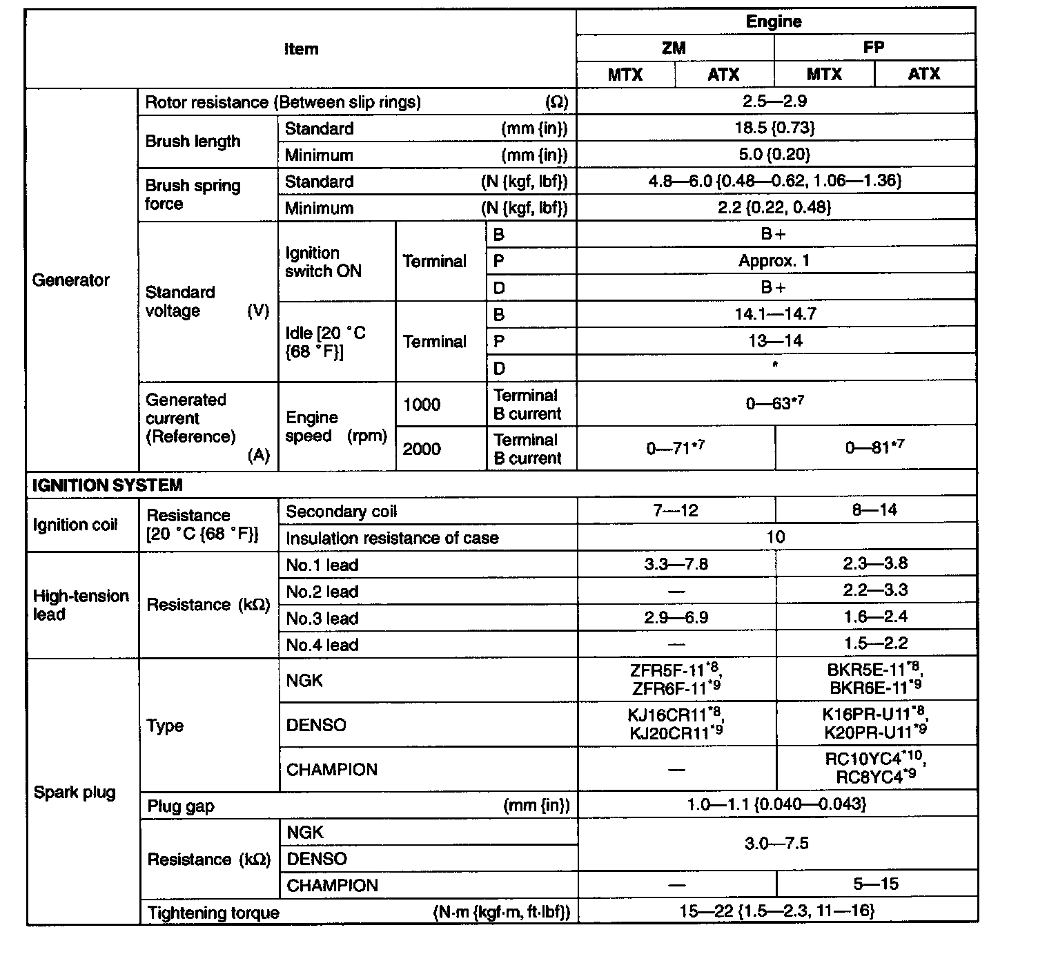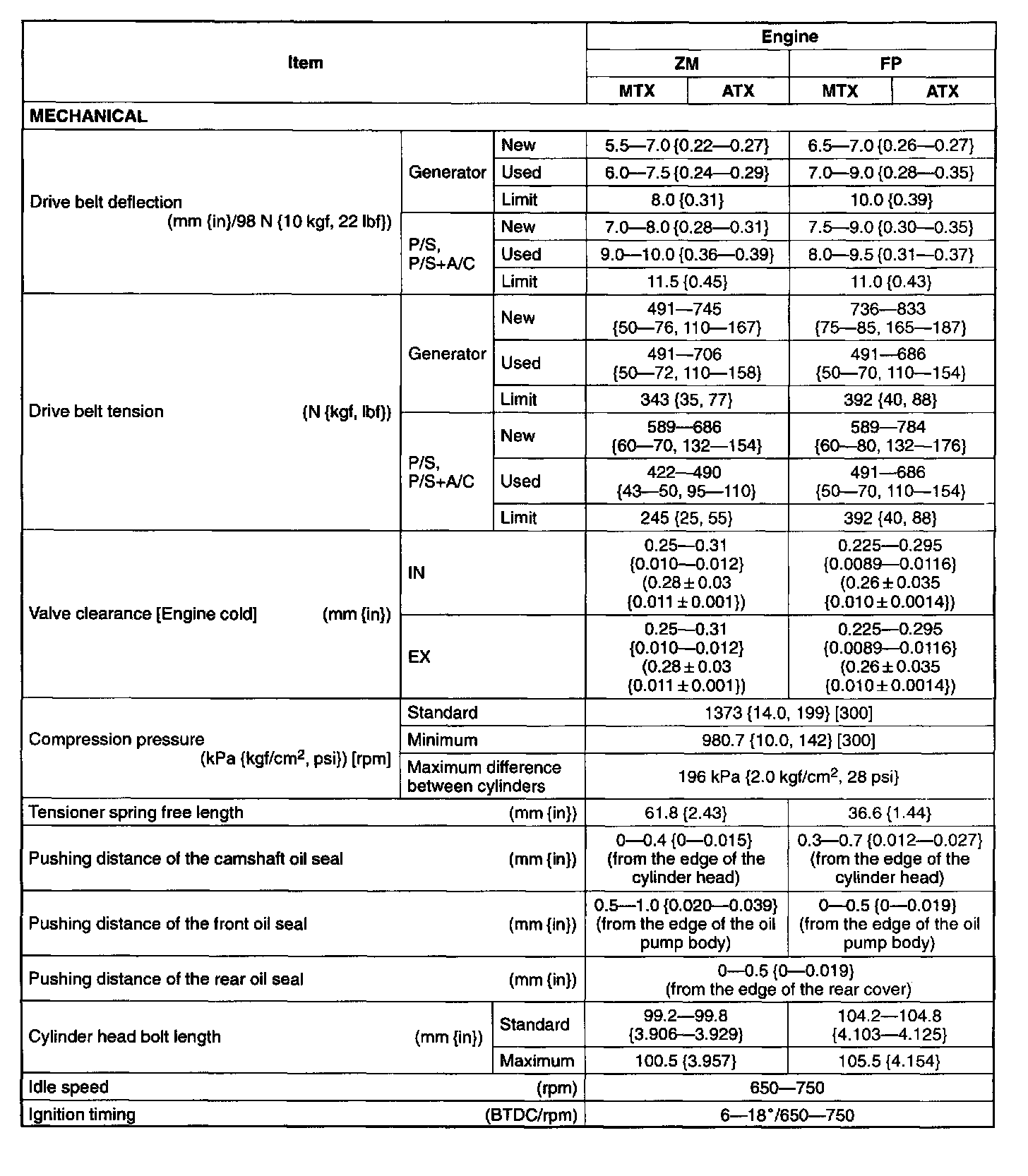 General Engine Specifications