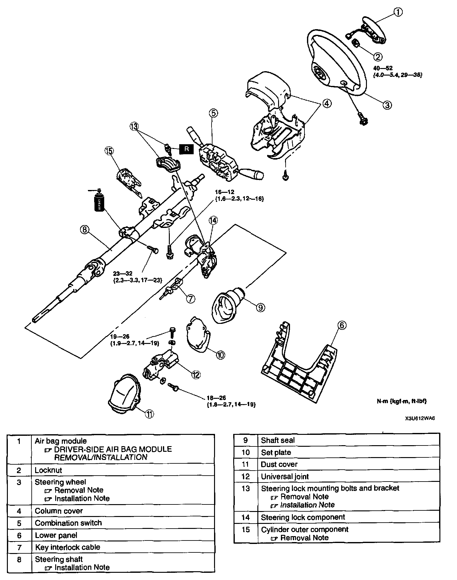 STEERING WHEEL AND COLUMN REMOVAL/INSTALLATION1. Remove in the order indicated in the table.