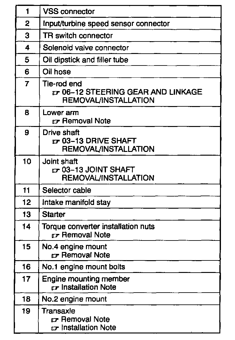 1. Loosen the SST (engine support) and lean the engine toward the transaxle.
