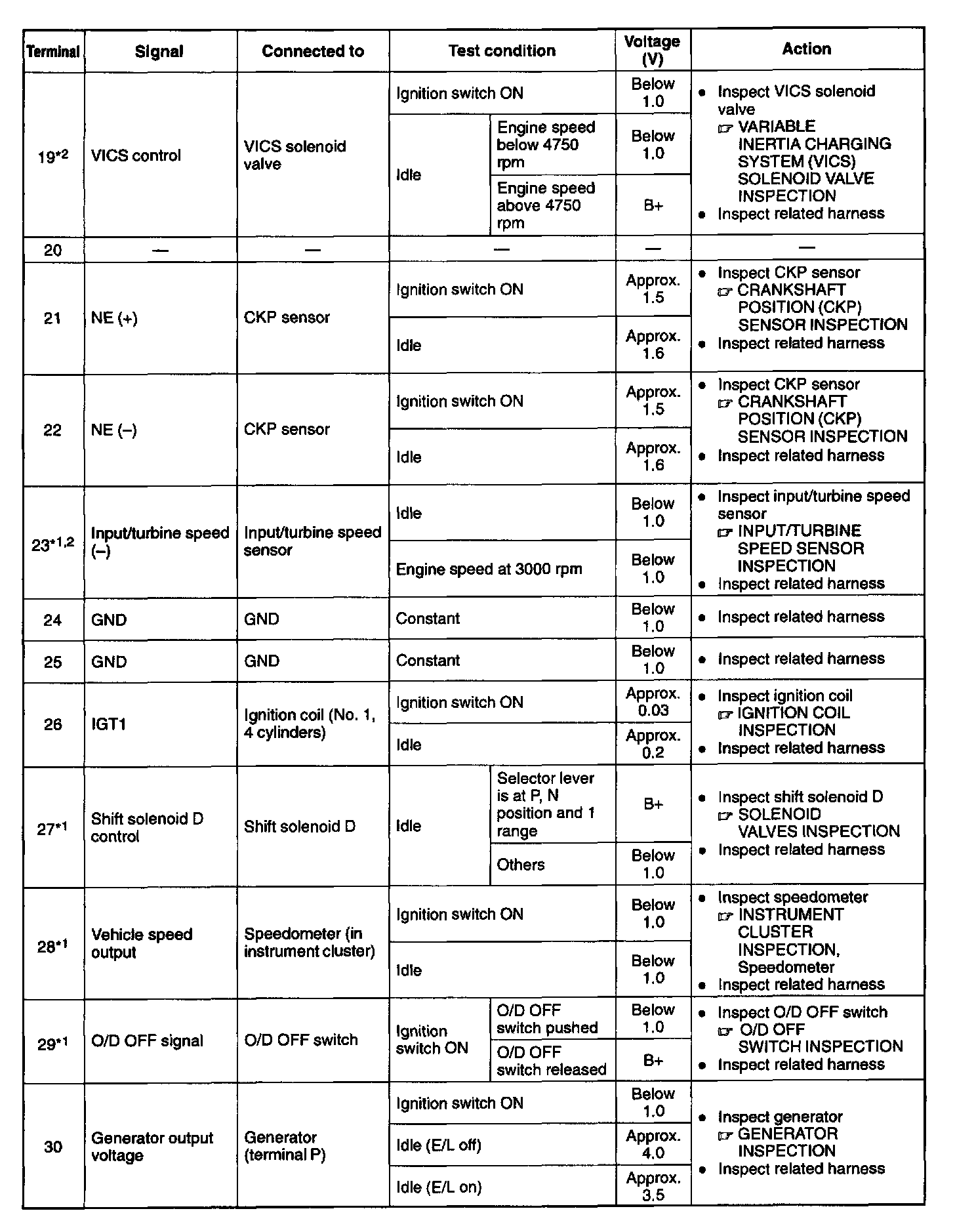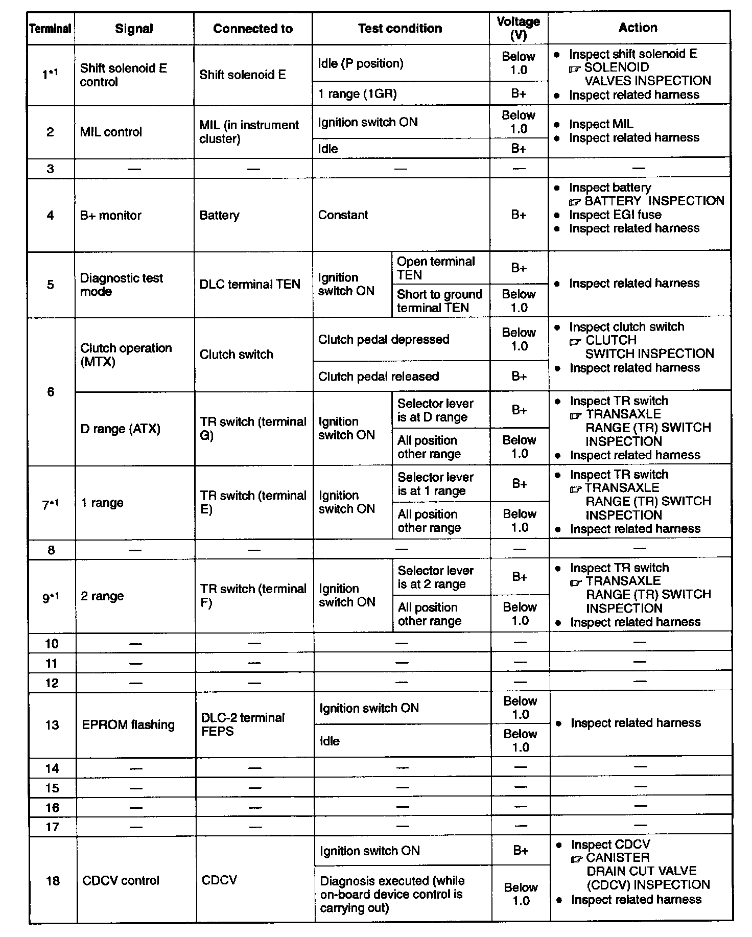 Pinout Values and Diagnostic Parameters