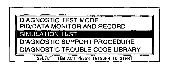 4. Move the cursor to SIMULATION TEST. Press the trigger key to enter this selection.