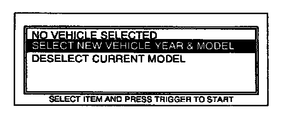 3. Move the cursor to SELECT NEW VEHICLE YEAR & MODEL. Press TRIGGER to enter this selection.