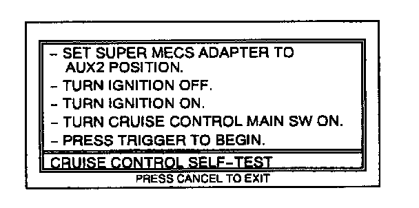 10. Move the cursor to CRUISE CONTROL INPUT SWITCH SELF-TEST. Press TRIGGER to enter this selection.