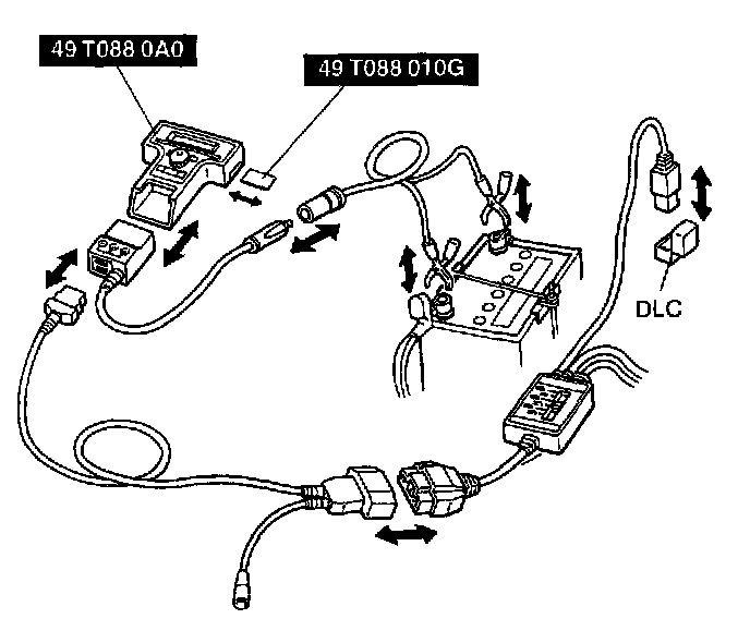 2. Plug the NGS OBD II adapter into the interface module and the connector into the data link connector (DLC) located in the engine compartment via the Super MECS Adapter.