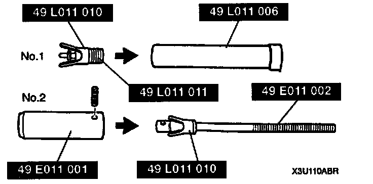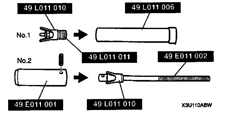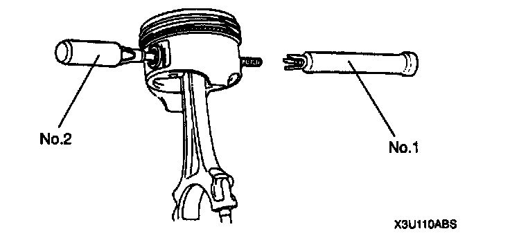 2. Insert SST No.2 into the piston pin as shown and fully screw in SST No.1.