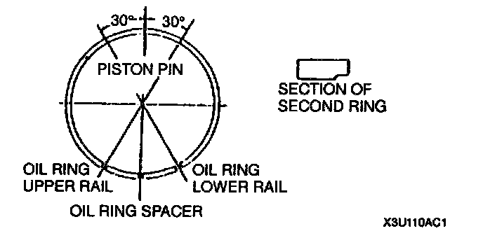 Caution: Install the second ring with the notch facing downward. Installing the second ring with the notch facing upward can cause oil pumping.