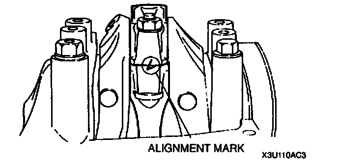 2. Install the connecting rod caps with the alignment marks aligned.