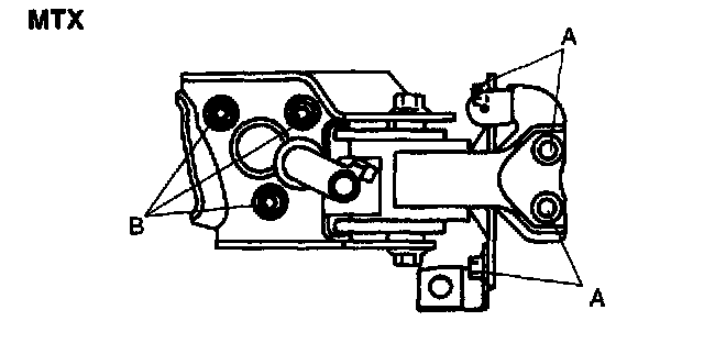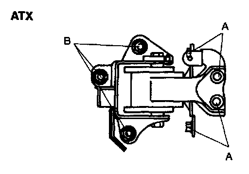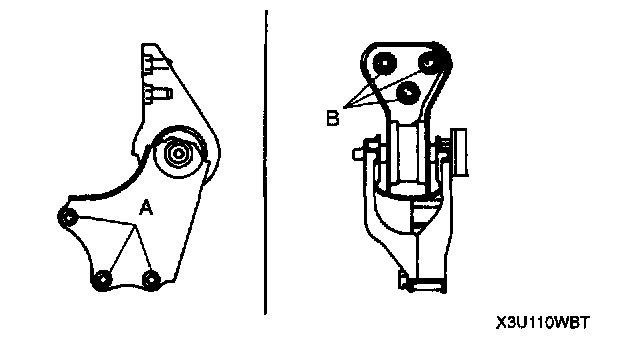 2. Tighten the No. 1 engine mount nut B.