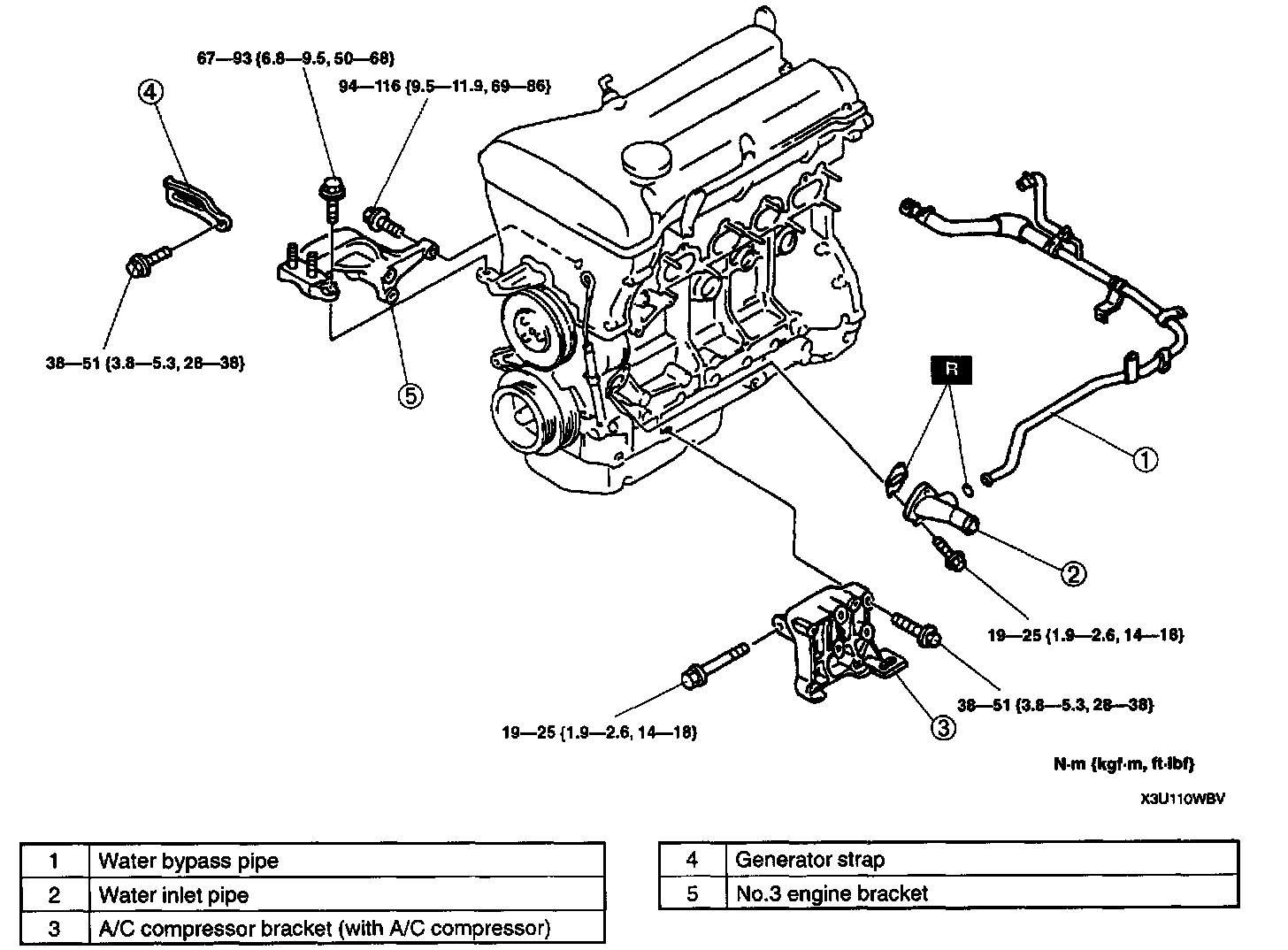 1. Tighten the No.3 engine mount bolt and nut in the order shown.
