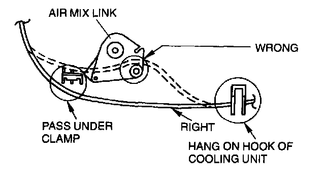 2. Disconnect the air intake, air mix, and airflow mode wires from each wire clamp and link.