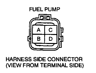 6. Measure the voltage at harness side fuel pump connector terminal B.