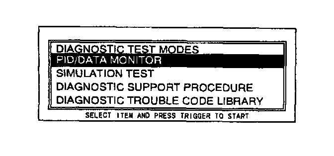 4. Move the cursor to PID/DATA MONITOR AND RECORD. Press the trigger key to enter this selection.