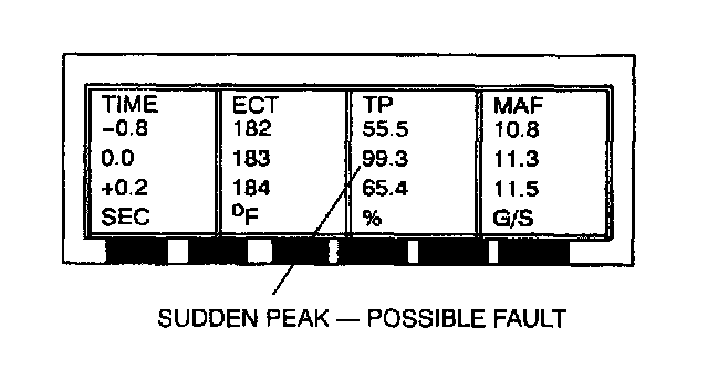 4. Table format: Scroll through the PID data while analyzing the information. Look for sudden drops or peaks in the values.