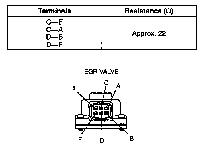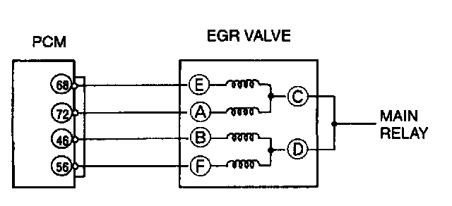 - Power circuit (EGR valve connector terminal C or D and main relay connector terminal D through common connector)