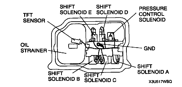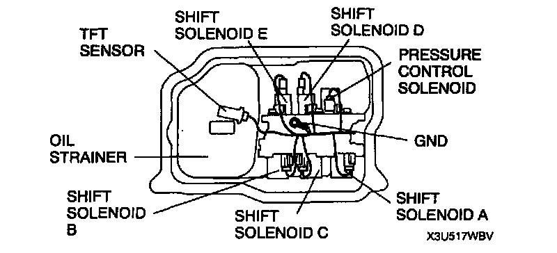 5. Disconnect the solenoid connectors and TFT sensor connector and GND.