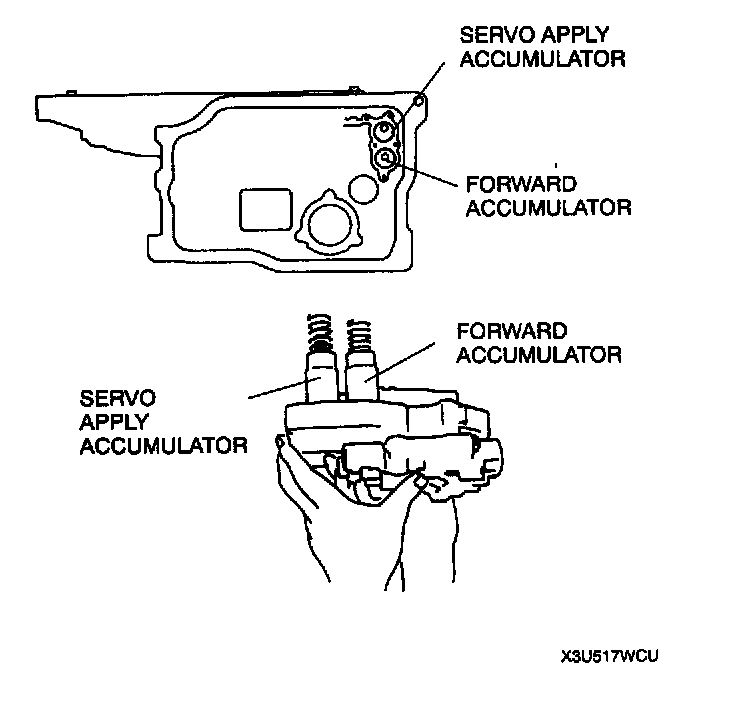 1. Install the accumulator springs and accumulator into the transaxle case.