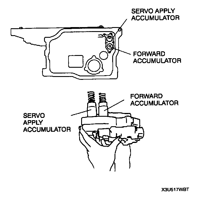8. Remove the accumulators and accumulator springs.