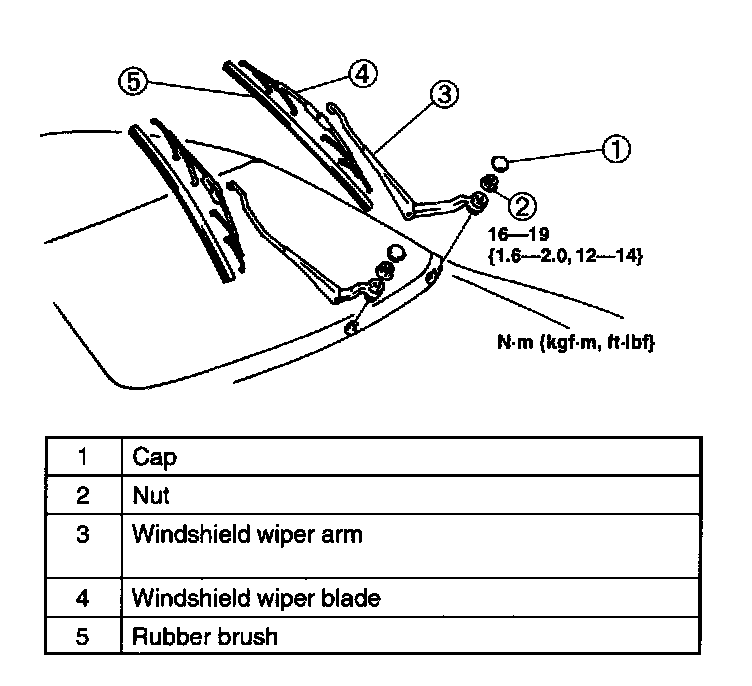 WINDSHIELD WIPER ARM AND BLADE REMOVAL/INSTALLATION1. Remove in the order indicated in the table.
