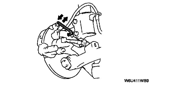 1. Turn the manual adjustment gear counterclockwise with an Allen wrench to pull the brake caliper piston inward. (Turn until it stops.)