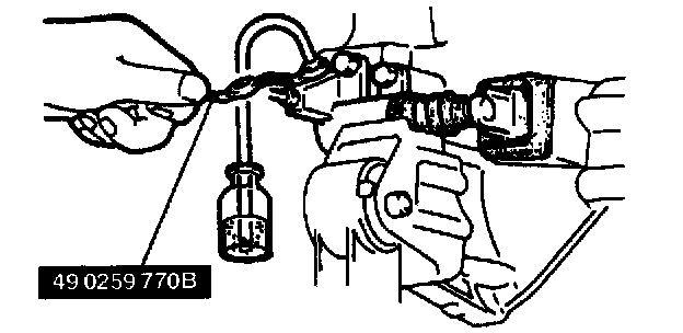 5. With the clutch pedal depressed, loosen the bleeder screw by using the SST to let fluid escape. Close the bleeder screw by using the SST.