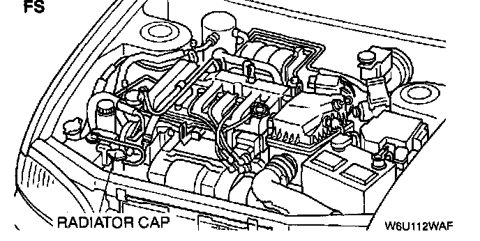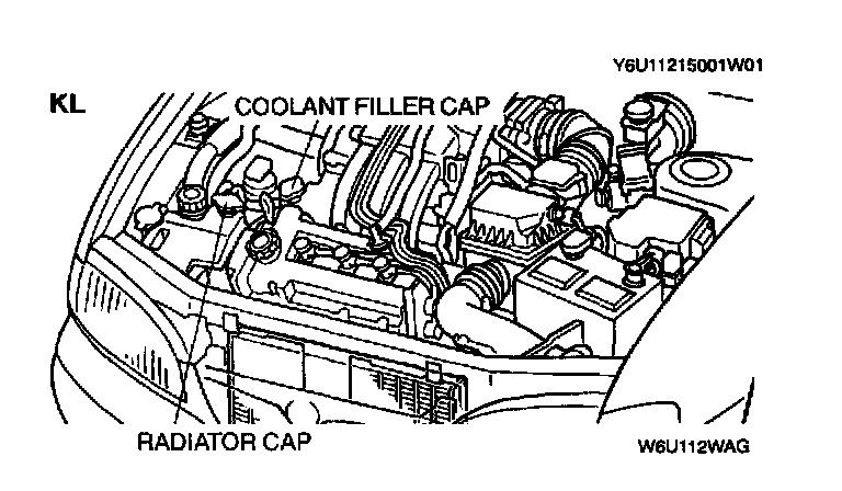 1. Remove the radiator cap (FS) or coolant filler cap (KL).
