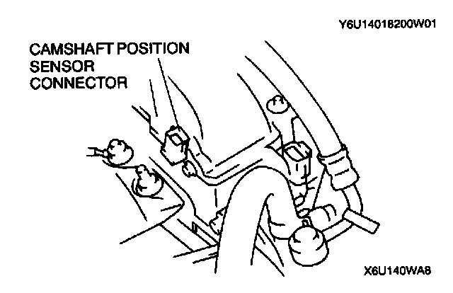 - If not as specified, check related wiring harness. If they are okay, replace the camshaft position sensor.