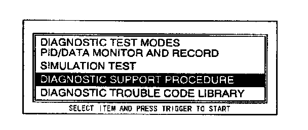 3. Move the cursor to DIAGNOSTIC SUPPORT PROCEDURE.