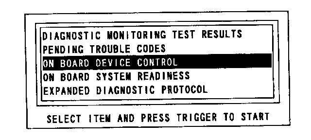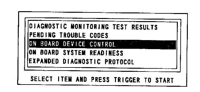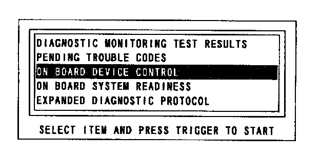 4. Select the ON BOARD DEVICE CONTROL of the GENERIC OBD - II FUNCTIONS and press TRIGGER.