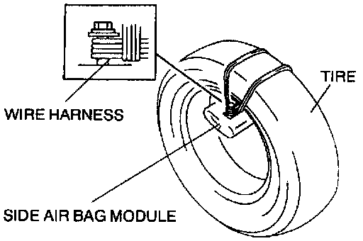 - If the air bag module is not properly Installed to the tire, serious injury may occur when the module is deployed. When Installing the air bag module to the tire, make sure the module is facing the center of the tire.