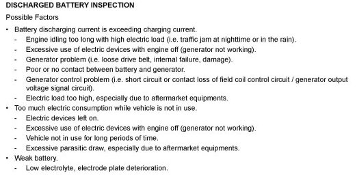 DISCHARGED BATTERY TROUBLESHOOTING PROCEDURE