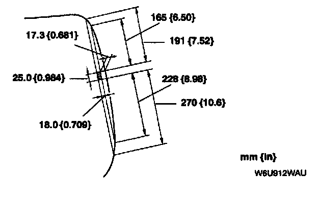 11. Verify that the gap is 6.8 mm {0.27 in} along the upper edge, 6.1 mm {0.26 in} along the lower edge and 1.1 mm {0.28 in} along the side edges.