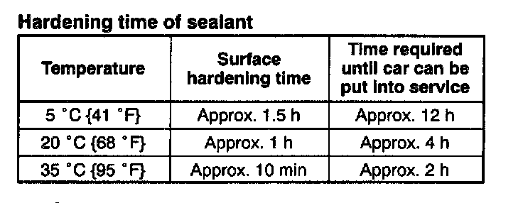 1. Cut away the old sealant using a razor knife so that 1 - 2 mm {0.04 - 0.07 in} thickness of sealant remains around the circumference of the frame. If all the sealant has come off in any one place, apply some primer after decreasing, and allow it 30 minutes to dry. Put on new sealant to create a 2 mm {0.08 in} layer.