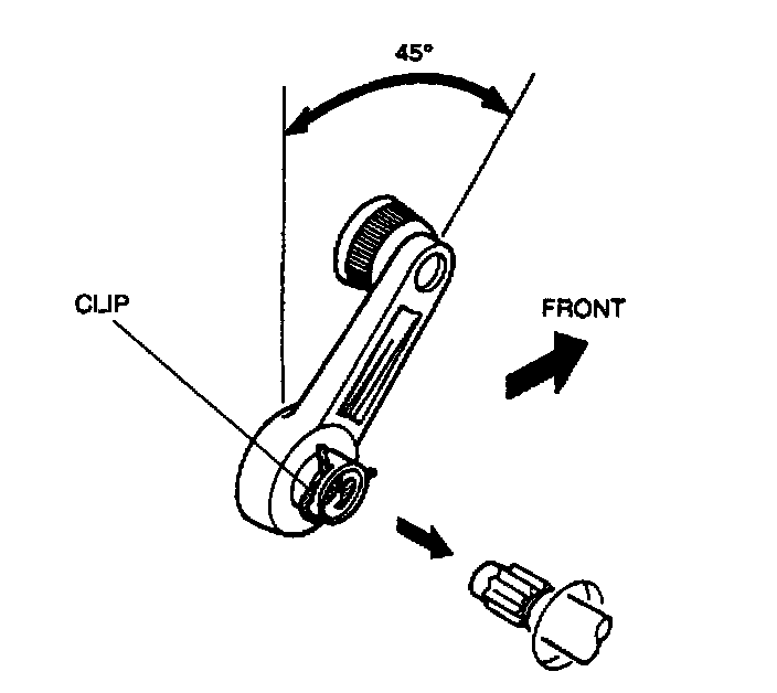 2. Set the door glass at the fully-raised position and push the regulator handle on as shown.