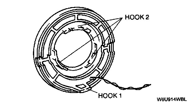 2. Install the hook 2 to the steering lock.