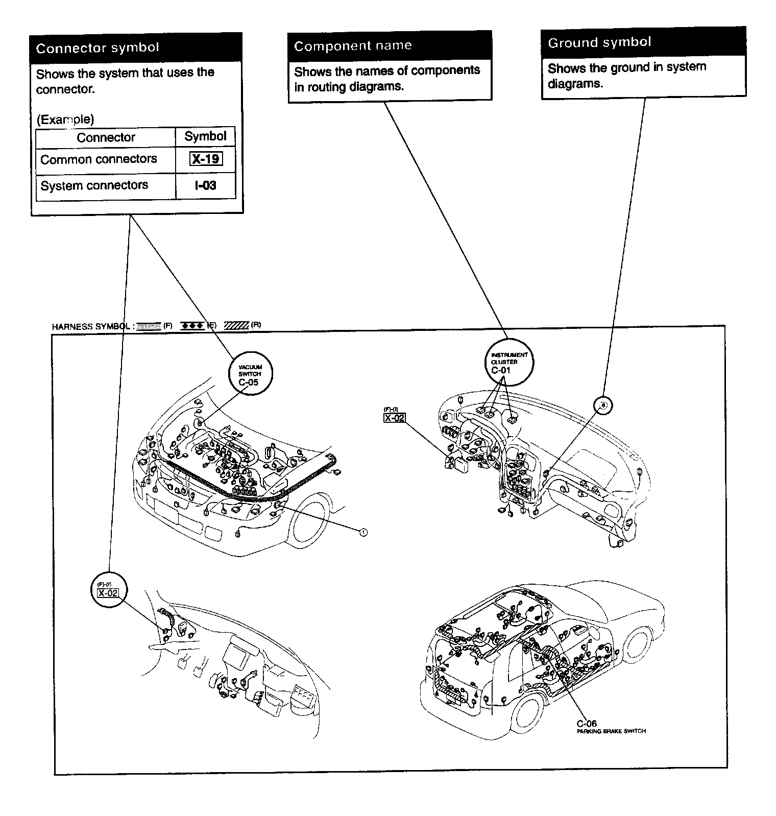 The routing diagram shows where electrical components are on the system circuit diagram by call out line and connector symbols.