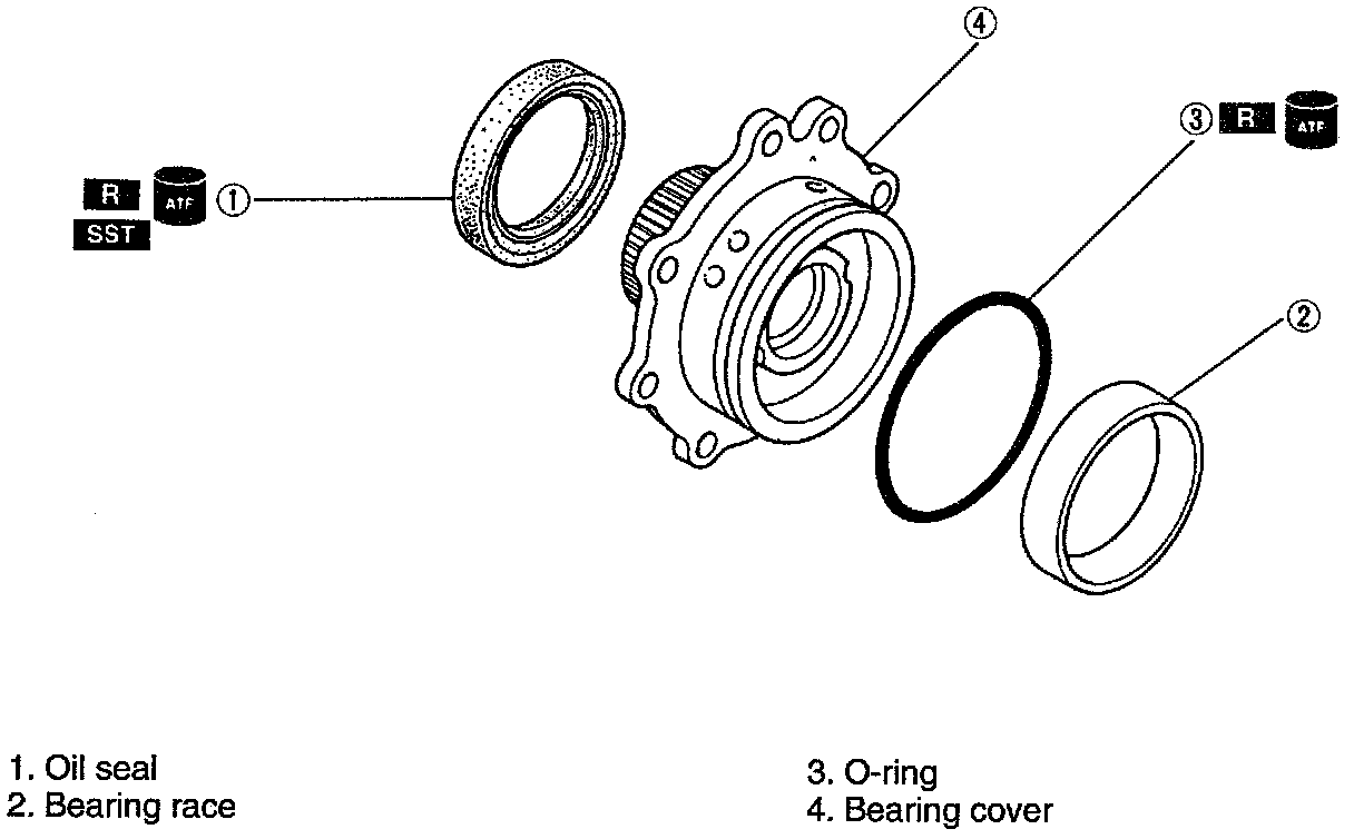 2. Apply ATF to a new O-ring and install it onto the bearing cover.