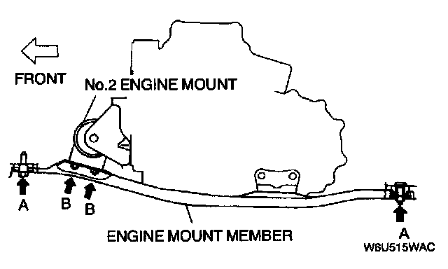 2. To install the engine mount member, put the No.2 engine mount stud bolts through the engine mount member installation holes.