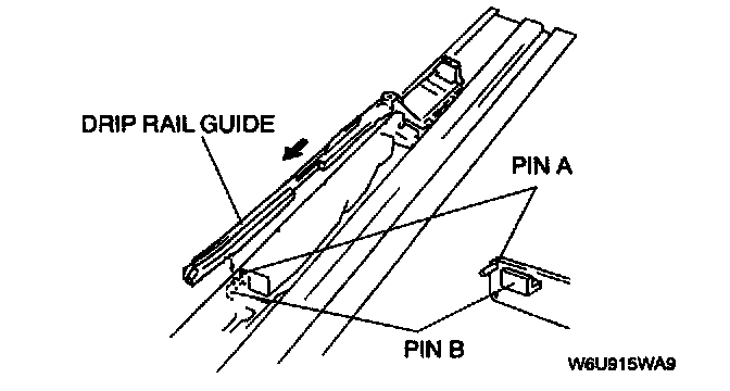 8. Push the drip rail guide downward to engage pins A and B to the guide.