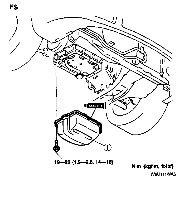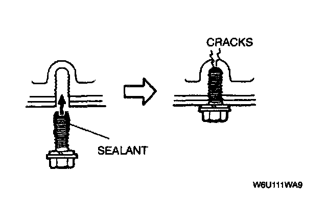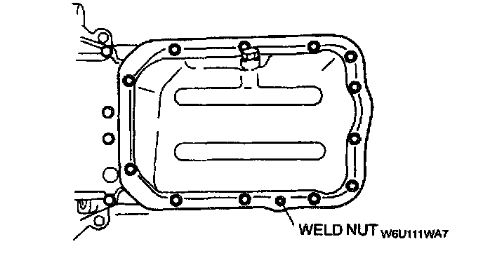 1. Screw a oil pan bolt in a weld nut hole to make a small gap between the oil pan upper block and the oil pan (FS).