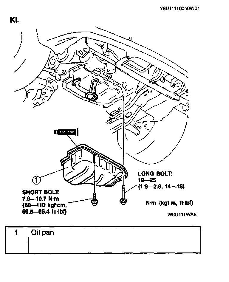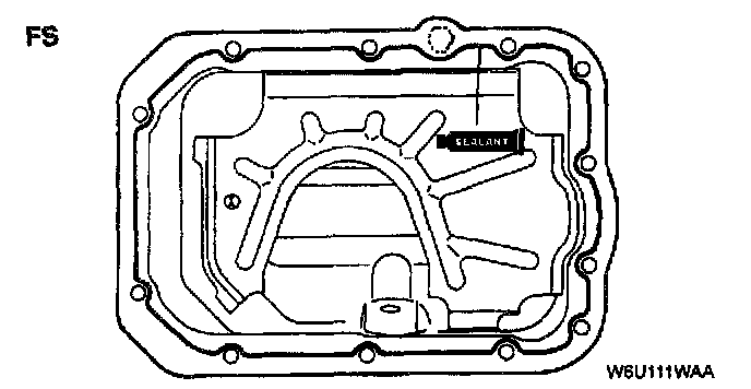 - Apply silicone sealant to the oil pan along the inside of the bolt holes and overlap the ends.