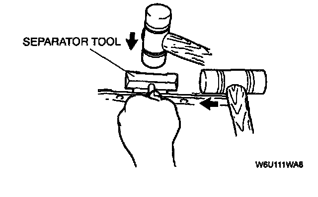 2. Insert a screwdriver or a separator tool between the oil pan upper block (FS) or lower cylinder block (KL) and the oil pan.