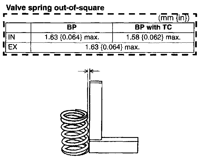 2. Measure the out-of-square of the valve spring. Replace the valve spring as necessary.