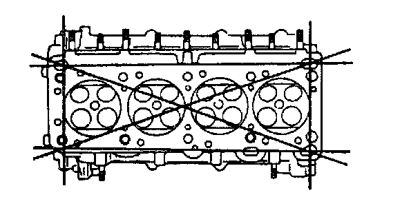3. Measure the cylinder head for distortion in the six directions as shown.