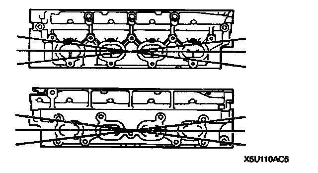 6. If the distortion exceeds the specification, grind the surface or replace the cylinder head.