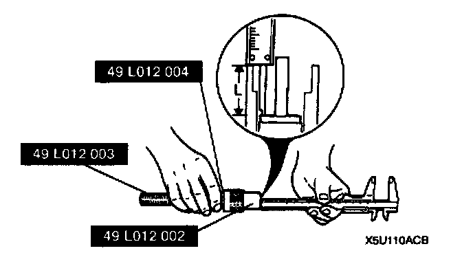 3. Inspect the sinking of the valve seat. Measure the protruding length (dimension L) of the valve stem. Replace the cylinder head as necessary.